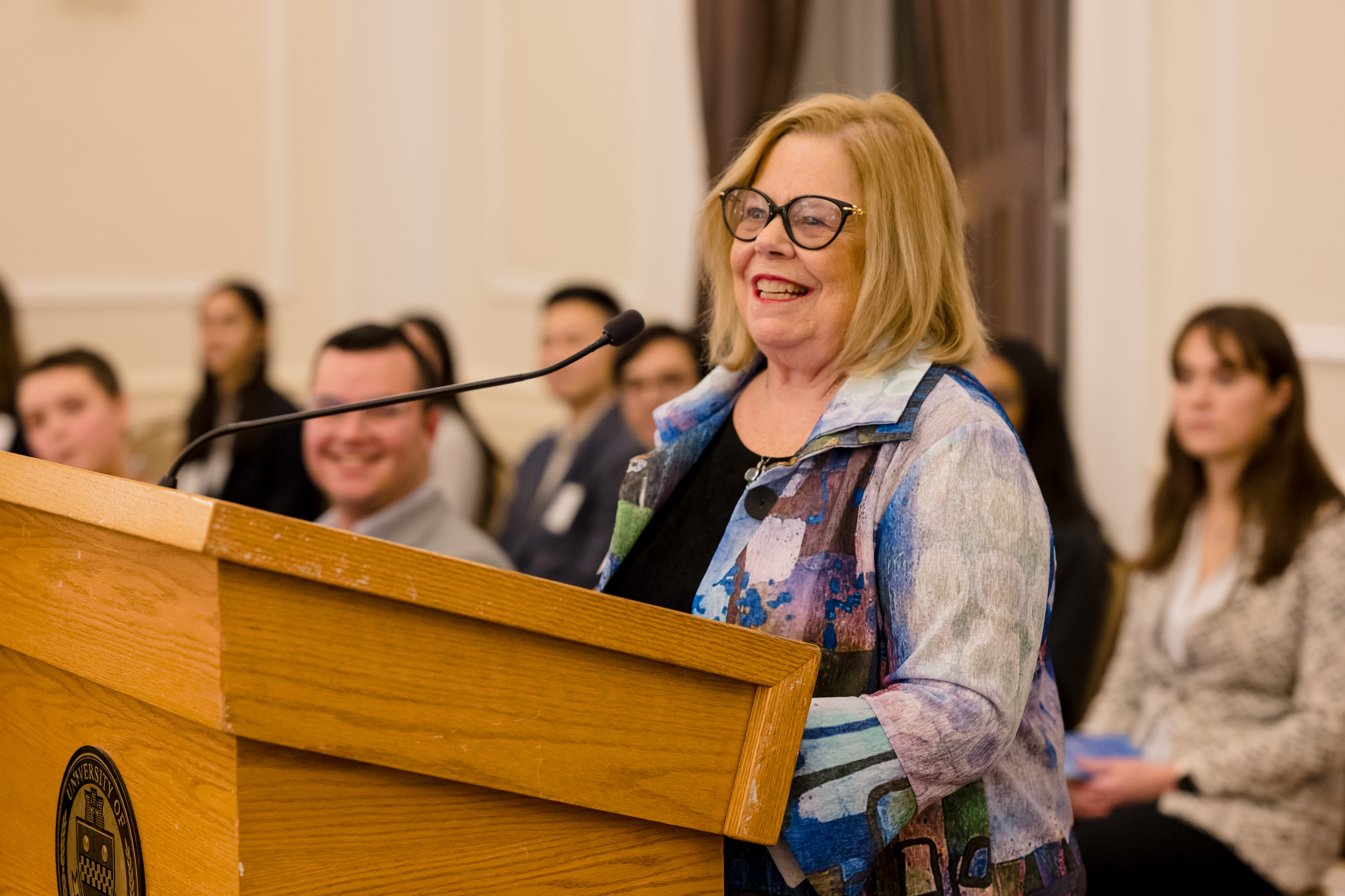 On October 30th, 2024 the University of Pittsburgh hosted the Pittsburgh Chapter for our annual donor appreciation event at the University Club. After time for members, scholars, guests, and university faculty and staff to snack on hors d’oeuvres while socializing, Co- President Anne Crawford began the evening’s program. Our featured speaker was Adam Leibovich, PhD, the University of Pittsburgh’s Bettye J. and Ralph E. Bailey Dean, Kenneth P. Dietrich School of Arts and Sciences, College of General Studies. As always, the highlight of the evening was hearing from our scholars. Third year scholars Sam Nance, Carnegie Mellon University, and Giannina Ramirez, University of Pittsburgh, described their research. Additionally, each scholar shared a fun fact about themselves. The last speaker was Beth Wainwright, national president of ARCS Foundation.